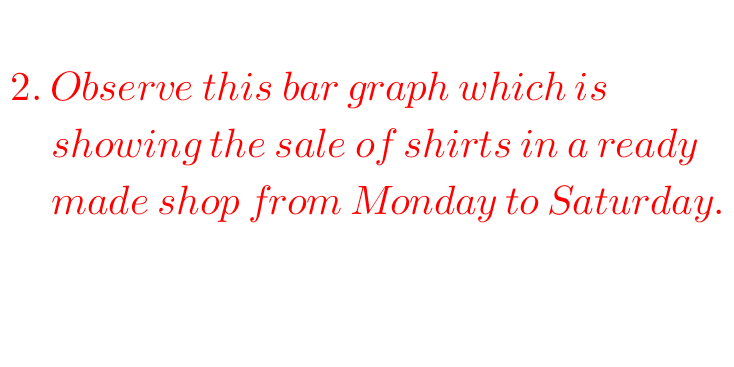 2. Observe this bar graph which is showing the sale of shirts in a ready made shop from Monday to Saturday.